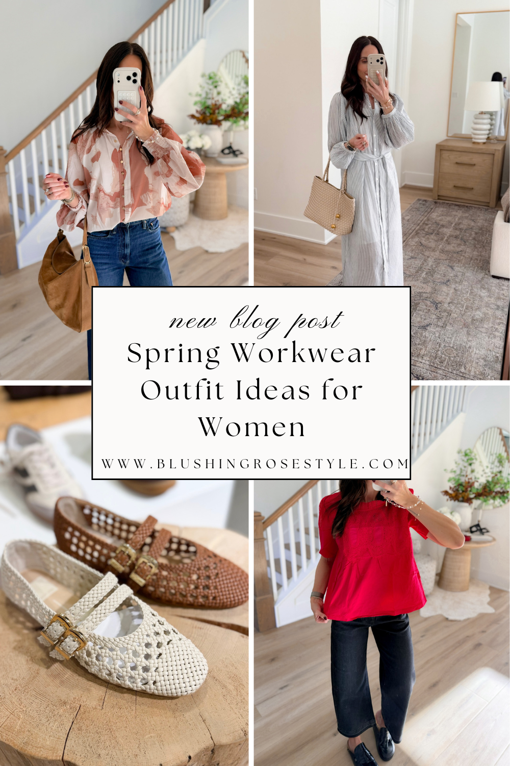For a solid workwear wardrobe, you only really need a few pairs of good shoes. A couple of flats, a pair of boots, and maybe a heel. Since we’re talking spring workwear, these are my favorite loafers and woven ballet flats. The loafers are so comfortable straight out of the box and available in multiple colors. The woven ballet flats are also super comfortable, and I love the style for spring, summer, and even early fall! They just came out in these super cute styles for spring and summer!